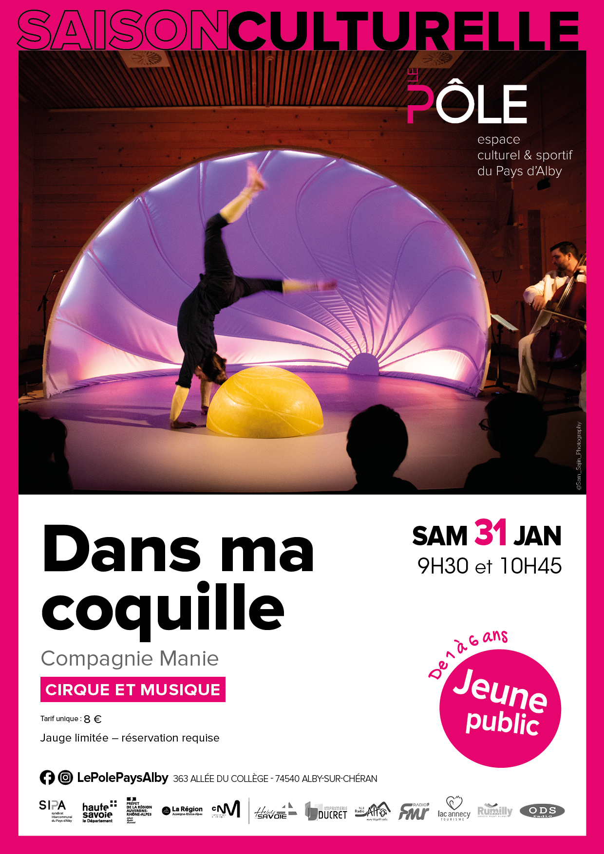 (à réserver sur place / 363 allée du Collège / ou en ligne sur https://www.sipalby.fr/saison-culturelle-pole)
